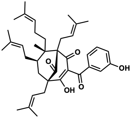 InChI=1S/C38H50O5/c1-24(2)12-11-19-36(9)29(16-15-25(3)4)23-37(20-17-26(5)6)33(41)31(32(40)28-13-10-14-30(39)22-28)34(42)38(36,35(37)43)21-18-27(7)8/h10,12-15,17-18,22,29,39,41H,11,16,19-21,23H2,1-9H3/t29-,36+,37+,38-/m1/s1 |
