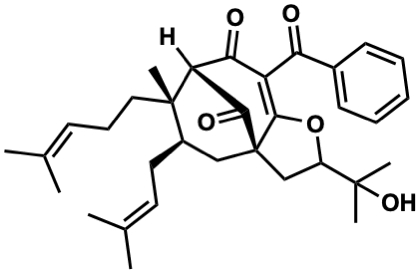 CC(C)=CCC[C@@]1(C)[C@H](CC=C(C)C)C[C@@]23CC(C(C)(C)O)OC2=C(C(=O)c2ccccc2)C(=O)[C@@H]1C3=O |