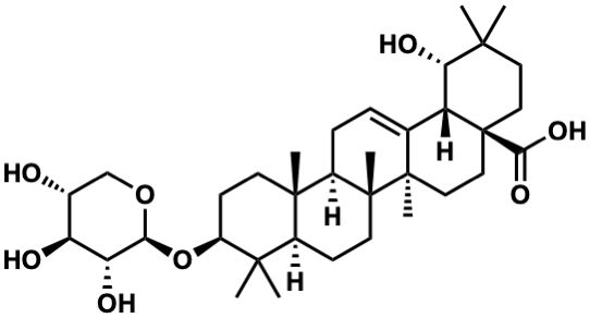 InChI=1S/C35H56O8/c1-30(2)14-16-35(29(40)41)17-15-33(6)19(24(35)27(30)39)8-9-22-32(5)12-11-23(31(3,4)21(32)10-13-34(22,33)7)43-28-26(38)25(37)20(36)18-42-28/h8,20-28,36-39H,9-18H2,1-7H3,(H,40,41)/t20-,21+,22-,23+,24-,25+,26-,27+,28+,32+,33-,34-,35+/m1/s1 |