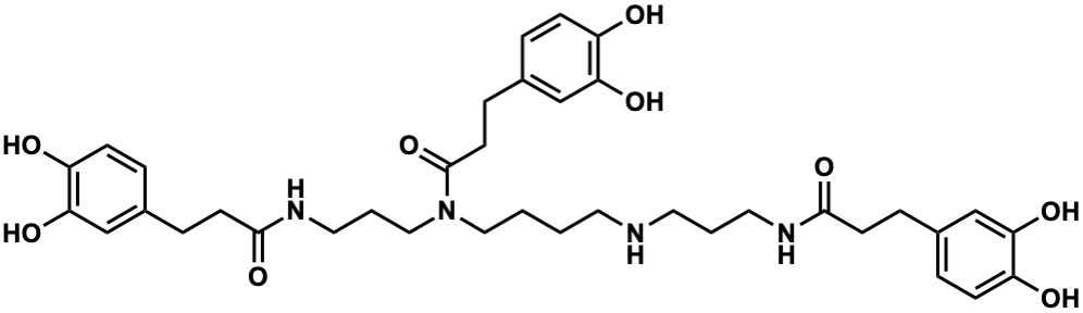 O=C(CCc1ccc(O)c(O)c1)NCCCNCCCCN(CCCNC(=O)CCc1ccc(O)c(O)c1)C(=O)CCc1ccc(O)c(O)c1 |