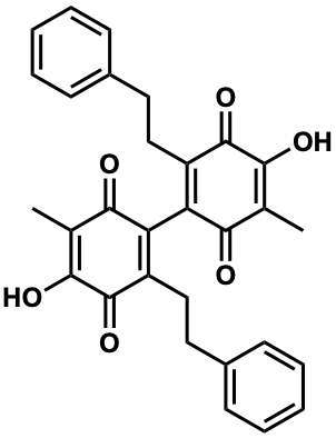 CC1=C(O)C(=O)C(CCc2ccccc2)=C(C2=C(CCc3ccccc3)C(=O)C(O)=C(C)C2=O)C1=O |