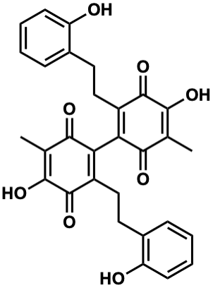 CC1=C(O)C(=O)C(CCc2ccccc2O)=C(C2=C(CCc3ccccc3O)C(=O)C(O)=C(C)C2=O)C1=O |
