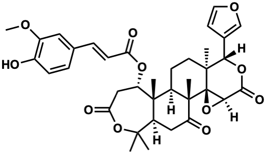 InChI=1S/C36H40O11/c1-32(2)24-16-25(38)35(5)23(11-13-33(3)29(20-12-14-43-18-20)45-31(41)30-36(33,35)47-30)34(24,4)26(17-28(40)46-32)44-27(39)10-8-19-7-9-21(37)22(15-19)42-6/h7-10,12,14-15,18,23-24,26,29-30,37H,11,13,16-17H2,1-6H3/b10-8+/t23-,24+,26+,29+,30-,33+,34-,35+,36-/m1/s1 |