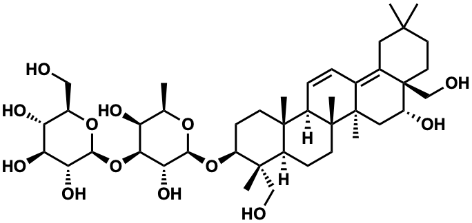 InChI=1S/C42H68O13/c1-21-29(47)34(55-35-32(50)31(49)30(48)24(18-43)53-35)33(51)36(52-21)54-28-11-12-38(4)25(39(28,5)19-44)10-13-40(6)26(38)9-8-22-23-16-37(2,3)14-15-42(23,20-45)27(46)17-41(22,40)7/h8-9,21,24-36,43-51H,10-20H2,1-7H3/t21-,24-,25-,26-,27-,28+,29+,30-,31+,32-,33-,34+,35+,36+,38+,39+,40-,41-,42-/m1/s1 |