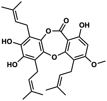 COc1cc(O)c2c(c1CC=C(C)C)Oc1c(CC=C(C)C)c(O)c(O)c(CC=C(C)C)c1OC2=O |
