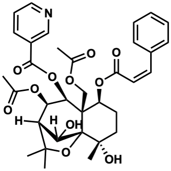 InChI=1S/C34H39NO11/c1-20(36)42-19-33-24(44-25(38)14-13-22-10-7-6-8-11-22)15-16-32(5,41)34(33)28(39)26(31(3,4)46-34)27(43-21(2)37)29(33)45-30(40)23-12-9-17-35-18-23/h6-14,17-18,24,26-29,39,41H,15-16,19H2,1-5H3/b14-13-/t24-,26+,27+,28?,29+,32-,33-,34-/m0/s1 |