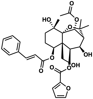 CC(=O)O[C@@H]1[C@H]2[C@@H](O)[C@@H](OC(=O)c3ccco3)[C@]3(CO)[C@@H](OC(=O)/C=C/c4ccccc4)CC[C@](C)(O)[C@@]13OC2(C)C |