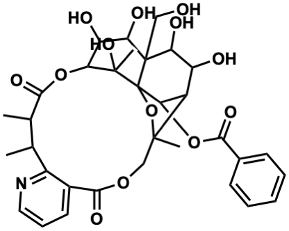 CC1C(=O)OC2C(O)C(O)C3(CO)C(O)C(O)C4C(OC(=O)c5ccccc5)C3(OC4(C)COC(=O)c3cccnc3C1C)C2(C)O |