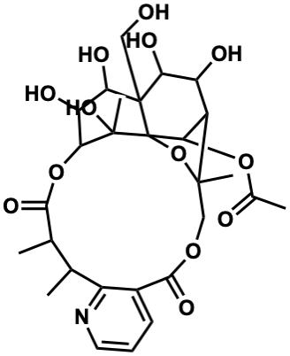 CC(=O)OC1C2C(O)C(O)C3(CO)C(O)C(O)C4OC(=O)C(C)C(C)c5ncccc5C(=O)OCC2(C)OC13C4(C)O |
