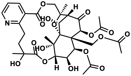 InChI=1S/C32H39NO16/c1-14(34)44-13-31-24(46-15(2)35)20(37)19-22(39)32(31)30(6,43)23(21(38)25(31)47-16(3)36)48-27(41)28(4,42)10-9-18-17(8-7-11-33-18)26(40)45-12-29(19,5)49-32/h7-8,11,19,21-25,38-39,42-43H,9-10,12-13H2,1-6H3/t19-,21+,22-,23+,24-,25+,28?,29+,30+,31-,32+/m1/s1 |