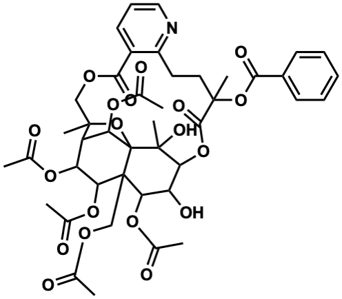InChI=1S/C43H49NO19/c1-21(45)55-20-42-34(59-24(4)48)30(50)33-41(8,54)43(42)32(58-23(3)47)29(31(57-22(2)46)35(42)60-25(5)49)40(7,63-43)19-56-37(52)27-15-12-18-44-28(27)16-17-39(6,38(53)61-33)62-36(51)26-13-10-9-11-14-26/h9-15,18,29-35,50,54H,16-17,19-20H2,1-8H3 |