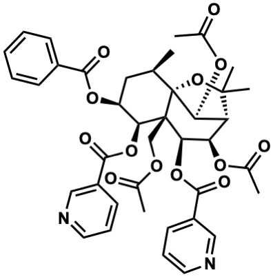 InChI=1S/C40H42N2O13/c1-22-18-29(52-35(46)26-12-8-7-9-13-26)32(53-36(47)27-14-10-16-41-19-27)39(21-49-23(2)43)34(54-37(48)28-15-11-17-42-20-28)31(50-24(3)44)30-33(51-25(4)45)40(22,39)55-38(30,5)6/h7-17,19-20,22,29-34H,18,21H2,1-6H3/t22-,29+,30-,31-,32+,33+,34-,39+,40-/m1/s1 |