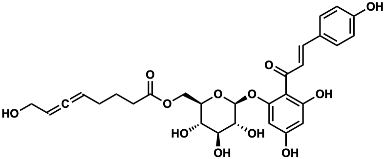 O=C(CCCC=C=CCO)OC[C@H]1O[C@@H](Oc2cc(O)cc(O)c2C(=O)/C=C/c2ccc(O)cc2)[C@H](O)[C@@H](O)[C@@H]1O |