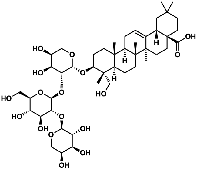 InChI=1S/C46H74O17/c1-41(2)13-15-46(40(56)57)16-14-44(5)22(23(46)17-41)7-8-28-42(3)11-10-29(43(4,21-48)27(42)9-12-45(28,44)6)61-38-35(31(52)25(50)20-59-38)63-39-36(33(54)32(53)26(18-47)60-39)62-37-34(55)30(51)24(49)19-58-37/h7,23-39,47-55H,8-21H2,1-6H3,(H,56,57)/t23-,24-,25-,26+,27+,28+,29-,30-,31-,32+,33-,34+,35+,36+,37-,38+,39-,42-,43-,44+,45+,46-/m0/s1 |