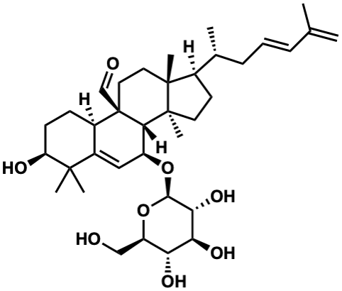 InChI=1S/C36H56O8/c1-20(2)9-8-10-21(3)22-13-14-35(7)31-25(43-32-30(42)29(41)28(40)26(18-37)44-32)17-24-23(11-12-27(39)33(24,4)5)36(31,19-38)16-15-34(22,35)6/h8-9,17,19,21-23,25-32,37,39-42H,1,10-16,18H2,2-7H3/b9-8+/t21-,22-,23-,25+,26-,27+,28-,29+,30-,31+,32-,34-,35+,36-/m1/s1 |