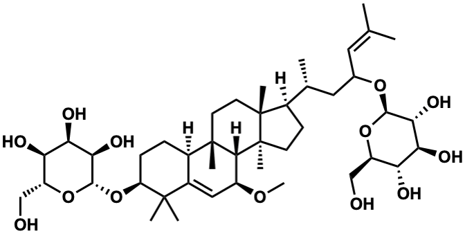 InChI=1S/C43H72O13/c1-21(2)16-23(53-38-35(50)33(48)31(46)28(19-44)54-38)17-22(3)24-12-13-43(8)37-27(52-9)18-26-25(41(37,6)14-15-42(24,43)7)10-11-30(40(26,4)5)56-39-36(51)34(49)32(47)29(20-45)55-39/h16,18,22-25,27-39,44-51H,10-15,17,19-20H2,1-9H3/t22-,23?,24-,25-,27+,28-,29-,30+,31-,32-,33+,34-,35-,36-,37-,38-,39+,41+,42-,43+/m1/s1 |