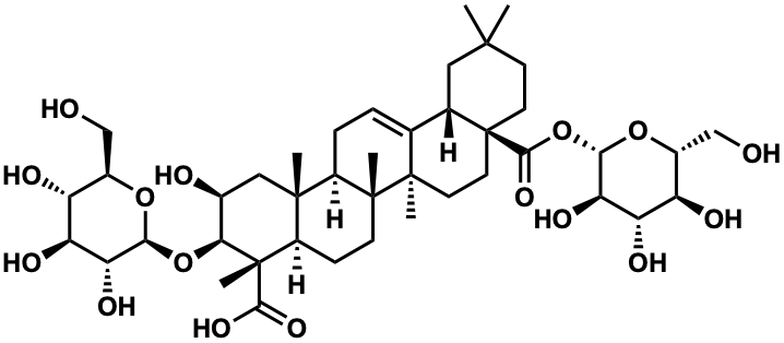 InChI=1S/C42H66O16/c1-37(2)11-13-42(36(54)58-34-31(51)29(49)27(47)23(18-44)56-34)14-12-39(4)19(20(42)15-37)7-8-24-38(3)16-21(45)32(41(6,35(52)53)25(38)9-10-40(24,39)5)57-33-30(50)28(48)26(46)22(17-43)55-33/h7,20-34,43-51H,8-18H2,1-6H3,(H,52,53)/t20-,21-,22+,23+,24+,25+,26+,27+,28-,29-,30+,31+,32-,33-,34-,38+,39+,40+,41-,42-/m0/s1 |