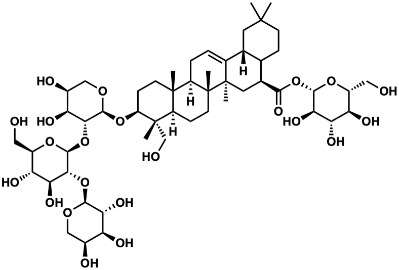 InChI=1S/C52H84O22/c1-48(2)12-9-22-23(15-48)25-7-8-31-49(3)13-11-32(50(4,21-55)30(49)10-14-51(31,5)52(25,6)16-24(22)43(66)74-45-40(65)37(62)35(60)28(17-53)69-45)71-46-41(34(59)27(57)20-68-46)73-47-42(38(63)36(61)29(18-54)70-47)72-44-39(64)33(58)26(56)19-67-44/h7,22-24,26-42,44-47,53-65H,8-21H2,1-6H3/t22?,23-,24+,26+,27+,28-,29-,30-,31-,32+,33+,34+,35-,36-,37+,38+,39-,40-,41-,42-,44+,45+,46+,47+,49+,50+,51-,52-/m1/s1 |