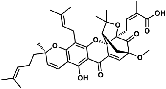 InChI=1S/C39H46O9/c1-21(2)11-10-16-36(8)17-15-24-29(40)28-30(41)26-19-37(45-9)20-27-35(6,7)48-38(34(37)44,18-14-23(5)33(42)43)39(26,27)47-32(28)25(31(24)46-36)13-12-22(3)4/h11-12,14-15,17,19,27,40H,10,13,16,18,20H2,1-9H3,(H,42,43)/b23-14-/t27-,36+,37-,38-,39+/m0/s1 |