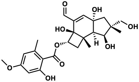 COc1cc(C)c(C(=O)O[C@H]2C[C@@]3(C)[C@@H]4[C@H](O)[C@@](C)(CO)C[C@]4(O)C=C(C=O)[C@@]23O)c(O)c1 |