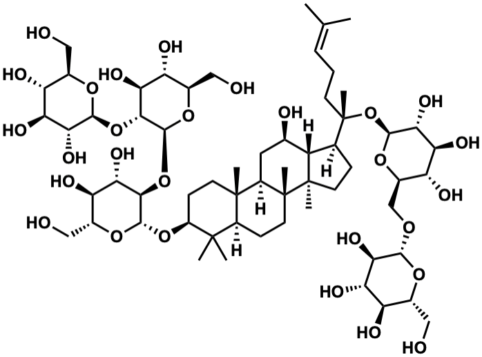 InChI=1S/C60H102O28/c1-24(2)10-9-14-60(8,88-53-48(78)43(73)40(70)31(84-53)23-79-51-46(76)41(71)36(66)27(19-61)80-51)25-11-16-59(7)35(25)26(65)18-33-57(5)15-13-34(56(3,4)32(57)12-17-58(33,59)6)85-54-49(44(74)38(68)29(21-63)82-54)87-55-50(45(75)39(69)30(22-64)83-55)86-52-47(77)42(72)37(67)28(20-62)81-52/h10,25-55,61-78H,9,11-23H2,1-8H3/t25-,26+,27+,28+,29+,30+,31+,32-,33+,34-,35-,36+,37+,38+,39+,40+,41-,42-,43-,44-,45-,46+,47+,48+,49+,50+,51+,52-,53-,54-,55-,57-,58+,59+,60-/m0/s1 |