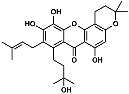 CC(C)=CCc1c(O)c(O)c2oc3c4c(cc(O)c3c(=O)c2c1CCC(C)(C)O)OC(C)(C)CC4 |