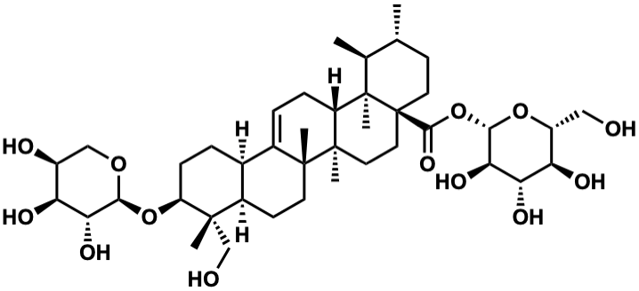 InChI=1S/C41H66O13/c1-20-11-14-41(36(50)54-35-33(49)31(47)30(46)26(17-42)52-35)16-15-39(5)27(40(41,6)21(20)2)9-8-24-22-7-10-28(53-34-32(48)29(45)25(44)18-51-34)37(3,19-43)23(22)12-13-38(24,39)4/h8,20-23,25-35,42-49H,7,9-19H2,1-6H3/t20-,21+,22-,23-,25+,26-,27+,28+,29+,30-,31+,32-,33-,34+,35+,37+,38-,39-,40-,41-/m1/s1 |