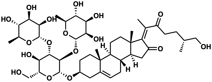 InChI=1S/C45H70O17/c1-19(17-46)7-10-28(48)20(2)31-29(49)16-27-25-9-8-23-15-24(11-13-44(23,5)26(25)12-14-45(27,31)6)59-43-40(62-42-38(56)36(54)33(51)22(4)58-42)39(34(52)30(18-47)60-43)61-41-37(55)35(53)32(50)21(3)57-41/h8,19,21-22,24-27,30,32-43,46-47,50-56H,7,9-18H2,1-6H3/b31-20+/t19-,21+,22+,24+,25-,26+,27+,30-,32+,33+,34-,35-,36-,37-,38-,39+,40-,41+,42+,43-,44+,45+/m1/s1 |