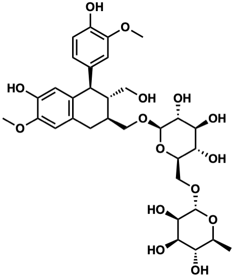 InChI=1S/C32H44O15/c1-13-25(36)27(38)29(40)31(46-13)45-12-23-26(37)28(39)30(41)32(47-23)44-11-16-6-15-8-22(43-3)20(35)9-17(15)24(18(16)10-33)14-4-5-19(34)21(7-14)42-2/h4-5,7-9,13,16,18,23-41H,6,10-12H2,1-3H3/t13-,16+,18+,23+,24+,25-,26+,27+,28-,29+,30+,31+,32+/m0/s1 |