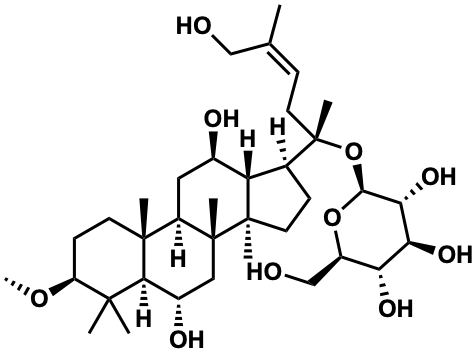 InChI=1S/C36H62O10/c1-19(17-37)9-14-36(7,46-31-29(43)28(42)27(41)23(18-38)45-31)20-10-13-34(5)26(20)21(39)15-24-33(4)12-11-25(44-8)32(2,3)30(33)22(40)16-35(24,34)6/h9,20-31,37-43H,10-18H2,1-8H3/b19-9-/t20-,21+,22-,23+,24+,25-,26-,27+,28-,29+,30-,31-,33+,34+,35+,36-/m0/s1 |