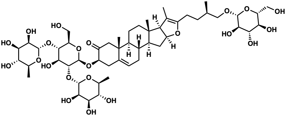 InChI=1S/C51H80O22/c1-19(18-65-46-40(61)39(60)36(57)31(16-52)70-46)7-10-28-20(2)33-30(68-28)14-26-24-9-8-23-13-29(27(54)15-51(23,6)25(24)11-12-50(26,33)5)69-49-45(73-48-42(63)38(59)35(56)22(4)67-48)43(64)44(32(17-53)71-49)72-47-41(62)37(58)34(55)21(3)66-47/h8,19,21-22,24-26,29-49,52-53,55-64H,7,9-18H2,1-6H3/t19-,21+,22+,24-,25+,26+,29-,30+,31-,32-,33+,34+,35+,36-,37-,38-,39+,40-,41-,42-,43+,44-,45-,46-,47+,48+,49-,50+,51+/m1/s1 |