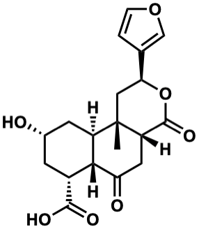 InChI=1S/C19H22O7/c1-19-7-15(9-2-3-25-8-9)26-18(24)13(19)6-14(21)16-11(17(22)23)4-10(20)5-12(16)19/h2-3,8,10-13,15-16,20H,4-7H2,1H3,(H,22,23)/t10-,11+,12+,13-,15-,16+,19-/m0/s1 |