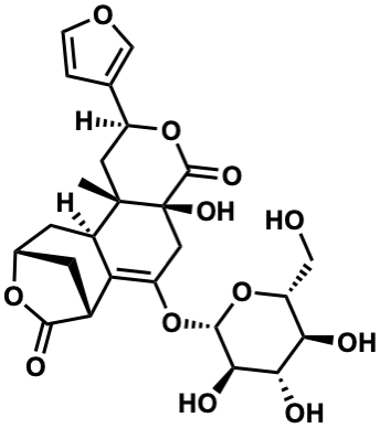 InChI=1S/C25H30O12/c1-24-6-14(10-2-3-33-9-10)37-23(31)25(24,32)7-15(17-12-4-11(5-13(17)24)34-21(12)30)35-22-20(29)19(28)18(27)16(8-26)36-22/h2-3,9,11-14,16,18-20,22,26-29,32H,4-8H2,1H3/t11-,12+,13+,14-,16+,18+,19-,20+,22+,24-,25+/m0/s1 |