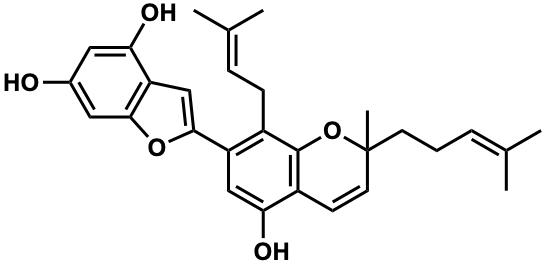InChI=1S/C29H32O5/c1-17(2)7-6-11-29(5)12-10-21-25(32)15-22(20(28(21)34-29)9-8-18(3)4)27-16-23-24(31)13-19(30)14-26(23)33-27/h7-8,10,12-16,30-32H,6,9,11H2,1-5H3 |
