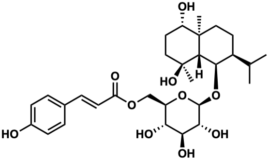 InChI=1S/C30H44O10/c1-16(2)19-11-13-29(3)21(32)12-14-30(4,37)27(29)26(19)40-28-25(36)24(35)23(34)20(39-28)15-38-22(33)10-7-17-5-8-18(31)9-6-17/h5-10,16,19-21,23-28,31-32,34-37H,11-15H2,1-4H3/b10-7+/t19-,20+,21-,23+,24-,25+,26+,27-,28-,29+,30-/m0/s1 |