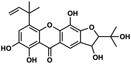9-(1,1-Dimethyl-2-propen-1-yl)-2,3-dihydro-3,6,7,11-tetrahydroxy-2-(1-hydroxy-1-methylethyl)-5H-furo[3,2-b]xanthen-5-one 9-(1,1-Dimethyl-2-propenyl)-2,3-dihydro-3,6,7,11-tetrahydroxy-2-(1-hydroxy-1-methylethyl)-5H-furo[3,2-b]xanthen-5-on |