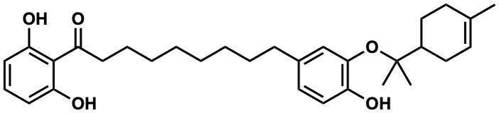 CC1=CCC(C(C)(C)Oc2cc(CCCCCCCCC(=O)c3c(O)cccc3O)ccc2O)CC1 |