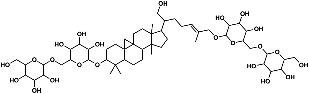 InChI=1S/C54H90O23/c1-24(20-70-46-44(68)40(64)36(60)29(75-46)21-71-47-42(66)38(62)34(58)27(18-56)73-47)7-6-8-25(17-55)26-11-13-52(5)32-10-9-31-50(2,3)33(12-14-53(31)23-54(32,53)16-15-51(26,52)4)77-49-45(69)41(65)37(61)30(76-49)22-72-48-43(67)39(63)35(59)28(19-57)74-48/h7,25-49,55-69H,6,8-23H2,1-5H3/b24-7+ |