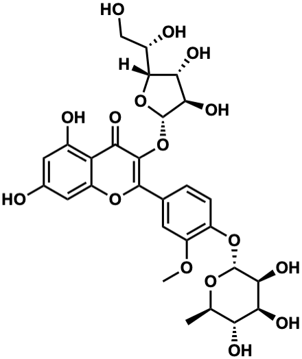 InChI=1S/C28H32O16/c1-9-18(33)20(35)22(37)27(40-9)42-14-4-3-10(5-15(14)39-2)24-26(19(34)17-12(31)6-11(30)7-16(17)41-24)44-28-23(38)21(36)25(43-28)13(32)8-29/h3-7,9,13,18,20-23,25,27-33,35-38H,8H2,1-2H3/t9-,13+,18-,20+,21-,22+,23-,25-,27-,28+/m1/s1 |