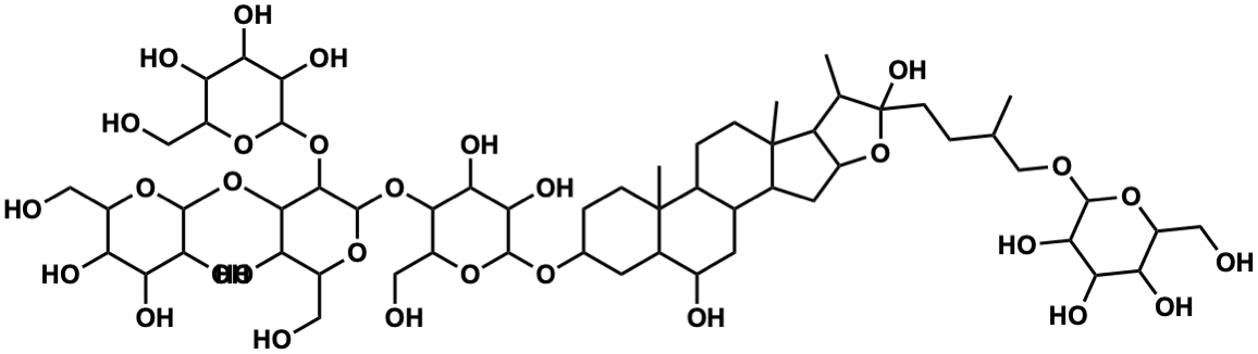 InChI=1S/C57H96O30/c1-20(19-77-50-43(72)39(68)35(64)29(14-58)79-50)5-10-57(76)21(2)34-28(87-57)13-25-23-12-27(63)26-11-22(6-8-55(26,3)24(23)7-9-56(25,34)4)78-51-46(75)42(71)47(33(18-62)83-51)84-54-49(86-53-45(74)41(70)37(66)31(16-60)81-53)48(38(67)32(17-61)82-54)85-52-44(73)40(69)36(65)30(15-59)80-52/h20-54,58-76H,5-19H2,1-4H3 |