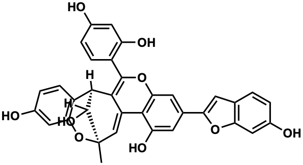 C[C@]12C=C3C(=C(c4ccc(O)cc4O)Oc4cc(-c5cc6ccc(O)cc6o5)cc(O)c43)[C@H](c3ccc(O)cc3O1)C2O |