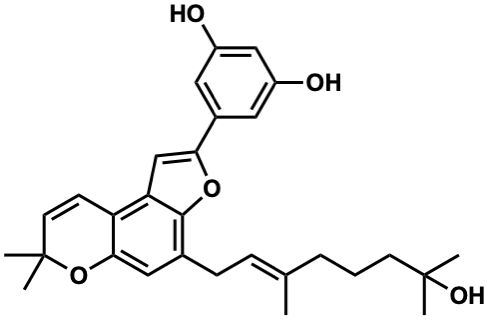 InChI=1S/C29H34O5/c1-18(7-6-11-28(2,3)32)8-9-19-15-26-23(10-12-29(4,5)34-26)24-17-25(33-27(19)24)20-13-21(30)16-22(31)14-20/h8,10,12-17,30-32H,6-7,9,11H2,1-5H3/b18-8+ |