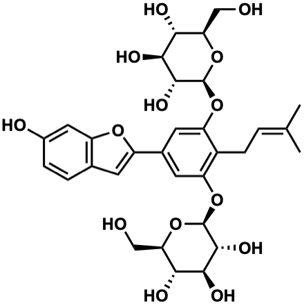 CC(C)=CCc1c(O[C@@H]2O[C@H](CO)[C@@H](O)[C@H](O)[C@H]2O)cc(-c2cc3ccc(O)cc3o2)cc1O[C@@H]1O[C@H](CO)[C@@H](O)[C@H](O)[C@H]1O |