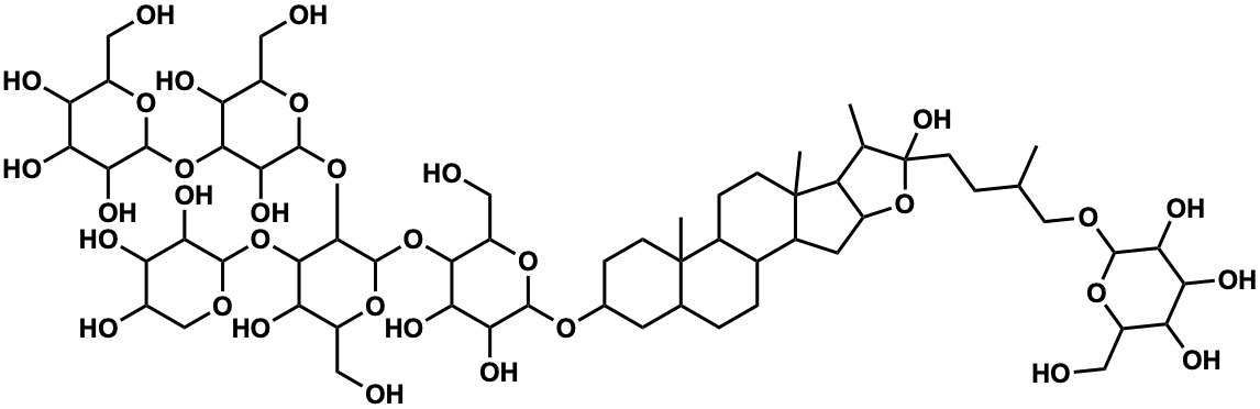 InChI=1S/C62H104O33/c1-22(20-83-54-46(78)42(74)38(70)31(15-63)86-54)7-12-62(82)23(2)36-30(95-62)14-28-26-6-5-24-13-25(8-10-60(24,3)27(26)9-11-61(28,36)4)85-56-48(80)44(76)50(35(19-67)90-56)91-59-53(52(41(73)34(18-66)89-59)93-55-45(77)37(69)29(68)21-84-55)94-58-49(81)51(40(72)33(17-65)88-58)92-57-47(79)43(75)39(71)32(16-64)87-57/h22-59,63-82H,5-21H2,1-4H3 |