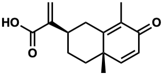 InChI=1S/C15H18O3/c1-9(14(17)18)11-4-6-15(3)7-5-13(16)10(2)12(15)8-11/h5,7,11H,1,4,6,8H2,2-3H3,(H,17,18)/t11-,15+/m1/s1 |