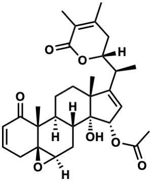 InChI=1S/C30H38O7/c1-15-12-22(36-26(33)16(15)2)17(3)20-13-25(35-18(4)31)30(34)21-14-24-29(37-24)10-7-8-23(32)28(29,6)19(21)9-11-27(20,30)5/h7-8,13,17,19,21-22,24-25,34H,9-12,14H2,1-6H3/t17-,19-,21+,22+,24+,25-,27+,28-,29+,30-/m0/s1 |