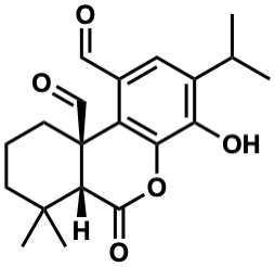 CC(C)c1cc(C=O)c2c(c1O)OC(=O)[C@@H]1C(C)(C)CCC[C@]21C=O |