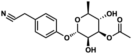 CC(=O)O[C@@H]1[C@@H](O)[C@H](C)O[C@@H](Oc2ccc(CC#N)cc2)[C@@H]1O |