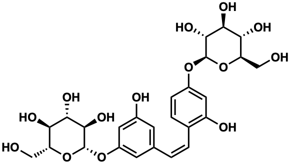 OC[C@H]1O[C@@H](Oc2cc(O)cc(/C=Cc3ccc(O[C@@H]4O[C@H](CO)[C@@H](O)[C@H](O)[C@H]4O)cc3O)c2)[C@H](O)[C@@H](O)[C@@H]1O |