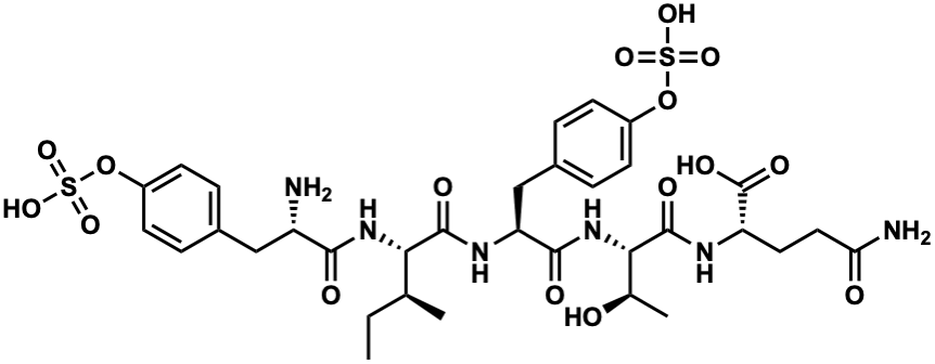 InChI=1S/C33H46N6O16S2/c1-4-17(2)27(38-29(42)23(34)15-19-5-9-21(10-6-19)54-56(48,49)50)31(44)37-25(16-20-7-11-22(12-8-20)55-57(51,52)53)30(43)39-28(18(3)40)32(45)36-24(33(46)47)13-14-26(35)41/h5-12,17-18,23-25,27-28,40H,4,13-16,34H2,1-3H3,(H2,35,41)(H,36,45)(H,37,44)(H,38,42)(H,39,43)(H,46,47)(H,48,49,50)(H,51,52,53)/t17-,18+,23-,24-,25-,27-,28-/m0/s1 |